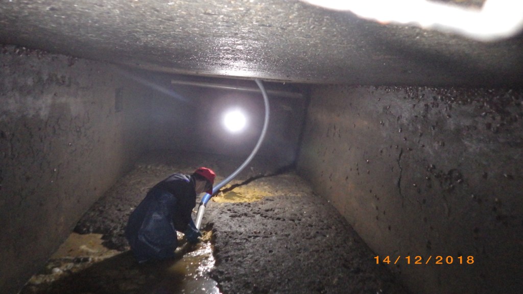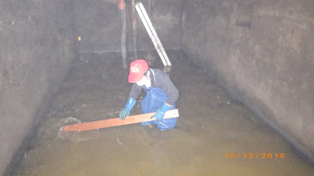 施工作業說明 化糞池廢水清理工 先以水肥車抽取上層水肥硬塊,確認至中層污水後,以污水馬達抽取污水至放流馬達池內排放,再使用水肥車將下層池底沉澱污泥抽除,污泥抽取完成後,以消防水將槽體池壁及池底清洗乾淨。 施工前 施工中 施工後